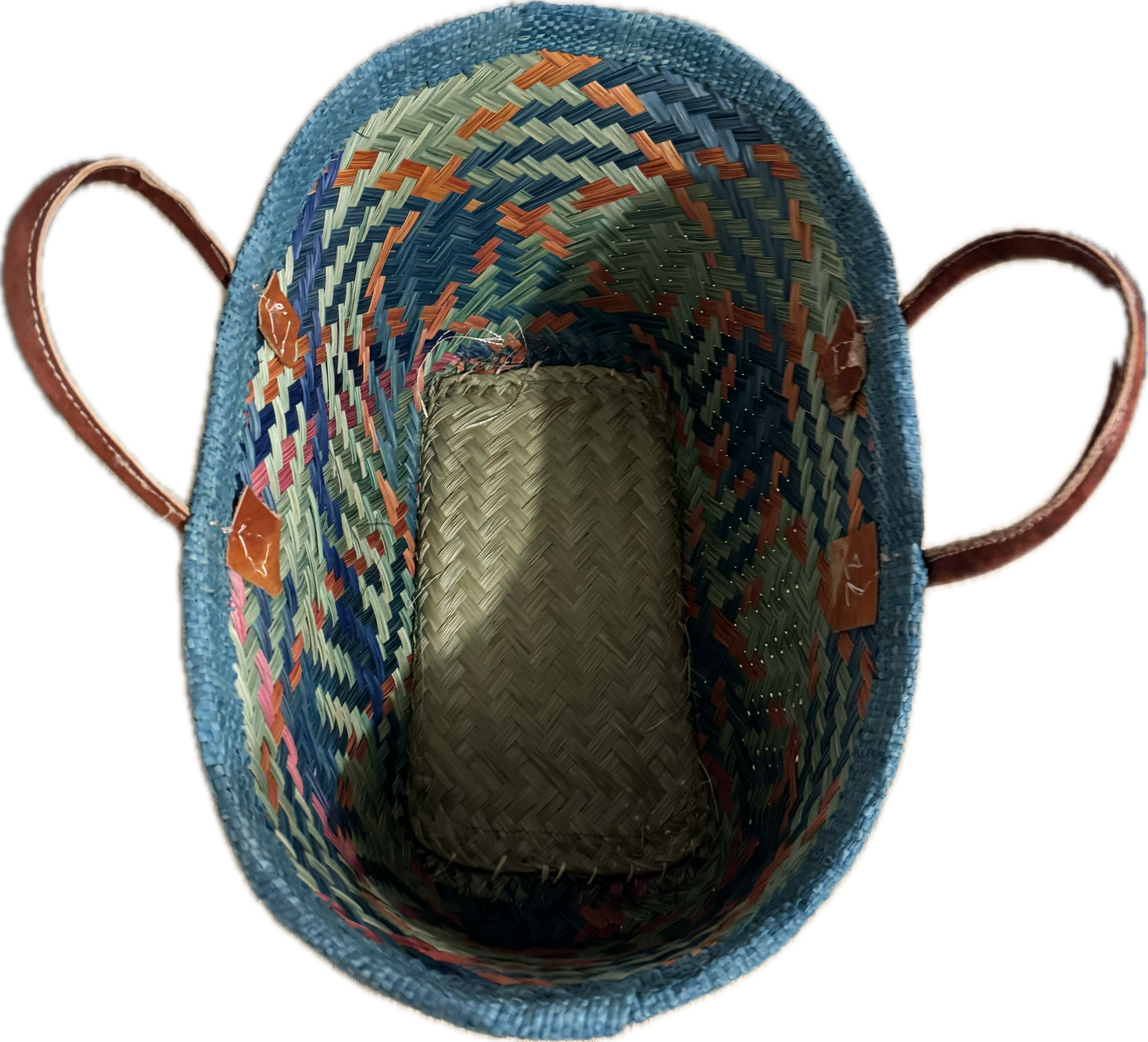 Ce panier Petit Modèle est entièrement confectionné à la main à Antananarivo par des artisans indépendants travaillant dans le respect des traditions locales.